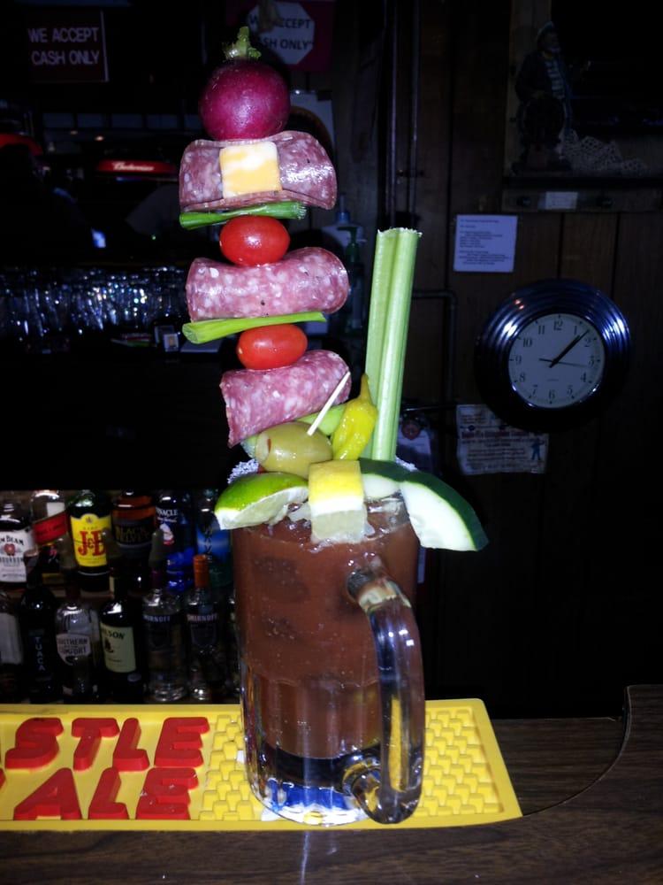 Wife was getting her hair done next door (studio fifty fifty) and decided to kill time. Here comes Hy Roy lounge. Pretty divey bar, they have 3 pool tables and darts, 2 tvs and a very nice bartender named Angie. Ordered a bloody Mary and cost 5 bucks!!!! What???? But what I love most about this place is the customer . service and the crowd. As soon as I walk in a customer nicely slid over so I can have a seat. Bartender attended to me right away. Very good customer service and the price is very Excellent. On top of the fact that they're cheap I would very much come back here for the fact that they welcome ALL customers like family, at least on a Thursday they do.